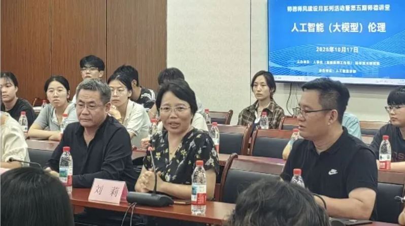 10月17日下午,第五期师德讲堂在临港校区学术楼301会议室举办。活动由党委教师工作部、科学技术研究院联合主办,人工智能学部承办,特邀上海市科研诚信宣讲团成员、上海立信会计金融学院胡乃静教授主讲,围绕“人工智能(大模型)伦理”展开深度分享。人工智能学部党委书记刘莉、党委副书记齐永晓及教师代表参加。