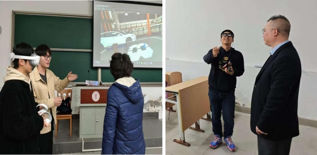 课堂上,学生们全程专注聆听,在互动环节,大家围绕“AR设备在极端环境下的稳定性”“电力大模型与 XR技术的融合路径” 等专业问题,与专家展开深入探讨,充分展现出扎实的学科素养与强烈的创新热情。课后,不少同学仍积极请教技术落地的具体细节,并亲身体验了智能化的终端XR眼镜。