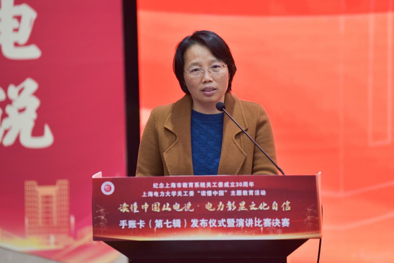 12月16日下午,由校关工委主办、人工智能学部承办的“读懂中国从电说·电力彰显文化自信”手账卡(第七辑)发布暨演讲比赛决赛在临港校区学术楼117会议室举办。市教卫工作党委老干部处处长、教育系统关工委秘书长于美华,市教育系统关工委驻会副主任金勤明,校党委书记、关工委主任宋来,校党委副书记、副校长、关工委执行主任朱克勇,校关工委常务副主任石奇光,校关工委副主任韦钢,校党委组织部部长赵建明,校党委宣传部部长石笑寒,校退休党委书记、关工委秘书长徐广新,校学工部部长、校关工委副秘书长陈姗姗,人工智能学部党委书记、关工委主任刘莉以及校团委、校关工委老同志代表、各二级学院党委副书记、教师代表和学生代表等三百余人参加,活动分为手账卡发布启动仪式和演讲比赛决赛。手账卡发布启动仪式由人工智能学部副书记齐永晓主持。