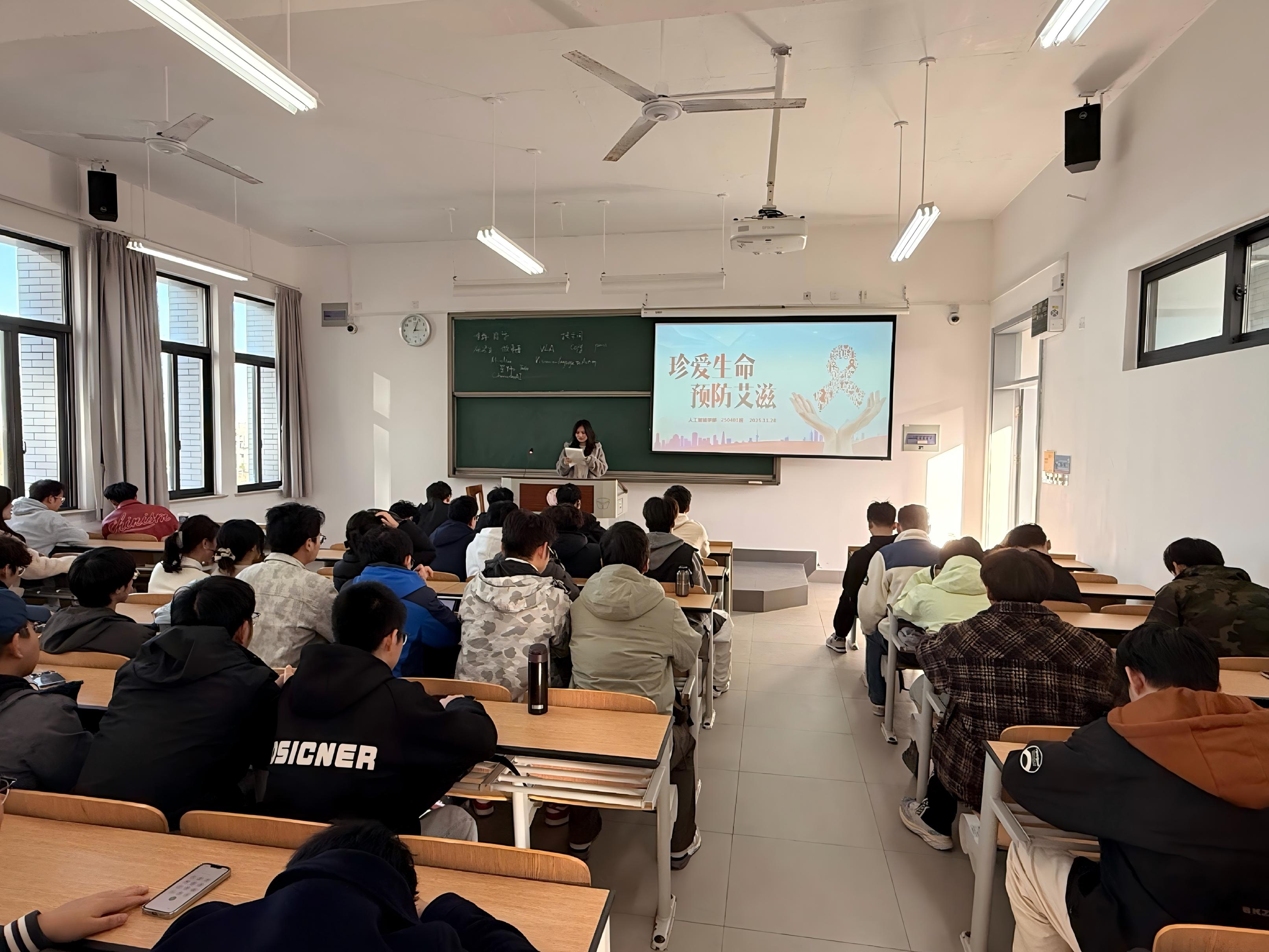 1128-121,人工智能学部在校区组织各班级开展“防艾同心”专题知识宣讲。通过“知识宣讲”、“科普短片”方式,系统介绍了艾滋病的传播途径、预防手段、检测与治疗进展,引导同学们树立科学预防艾滋病的观念。现场同学们积极参与互动,并在宣讲后认真完成预防艾滋病的知识问卷,进一步促进了预防艾滋病工作的开展。