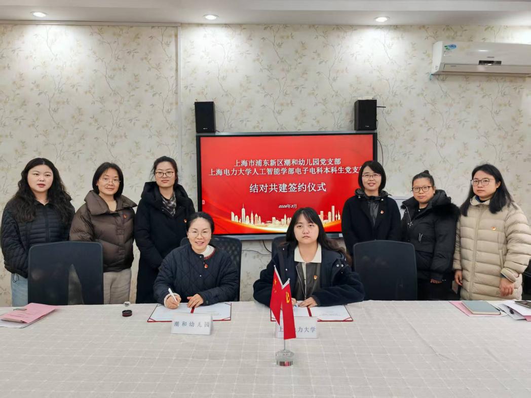 在 3・5 学雷锋纪念日到来之际,为深入践行雷锋精神,以党建引领志愿服务走深走实,推动高校资源与幼儿教育深度融合,构建“资源共享、优势互补、协同育人”的党建工作新格局,2026年3月4日上午,上海电力大学人工智能学部电子电科本科生党支部携手“E路领航”学生志愿者团队,前往潮和幼儿园开展党建共建签约仪式,并同步开展学雷锋主题志愿服务活动。
