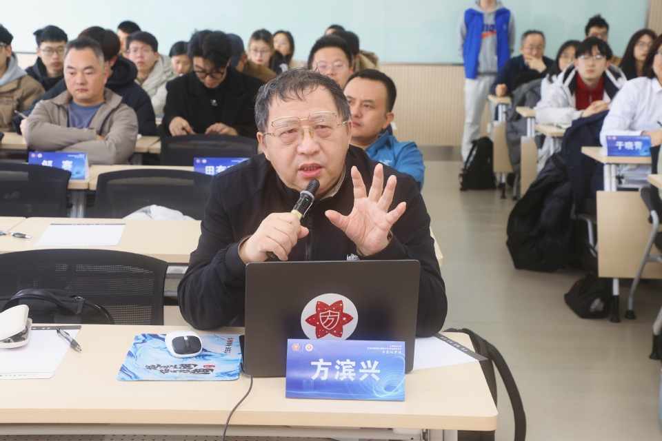 最后,方滨兴院士作为本次研讨会的主点评,结合自身深厚的学术积淀与丰富的实践经验,对每份报告进行高屋建瓴的深度剖析与系统指导,既精准点出每份研究报告中的亮点与可优化方向,又以循循善诱的方式引导学生拓展研究思路、深化研究内容,更将求源、思辨等核心研究方法融入点评过程,让在场师生不仅对具体研究内容有了更深刻的理解,更在科研思维与研究方法上收获颇丰。参与本次交流汇报的同学们纷纷表示,课程内容充实、启迪深远,不仅拓宽了学术视野,更提升了科研思维与实践能力,受益匪浅、收获满满。