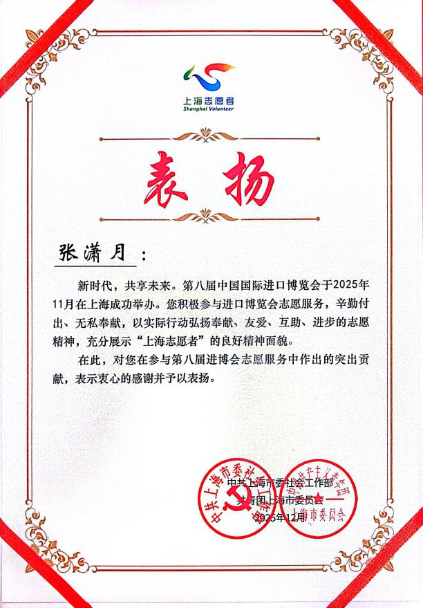 三月春风暖,雷锋精神传。正值全国上下深入开展“雷锋月”活动、大力弘扬“奉献、友爱、互助、进步”志愿精神之际,我校志愿服务工作再传捷报。近日,中共上海市委社会工作部、共青团上海市委发布了《关于通报表扬第八届中国国际进口博览会优秀志愿者和志愿服务先进集体的决定》,人工智能学部教师张潇月获评“第八届中国国际进口博览会优秀志愿者”,以实际行动践行使命,在进博会的大舞台上生动诠释了新时代雷锋精神的内涵。